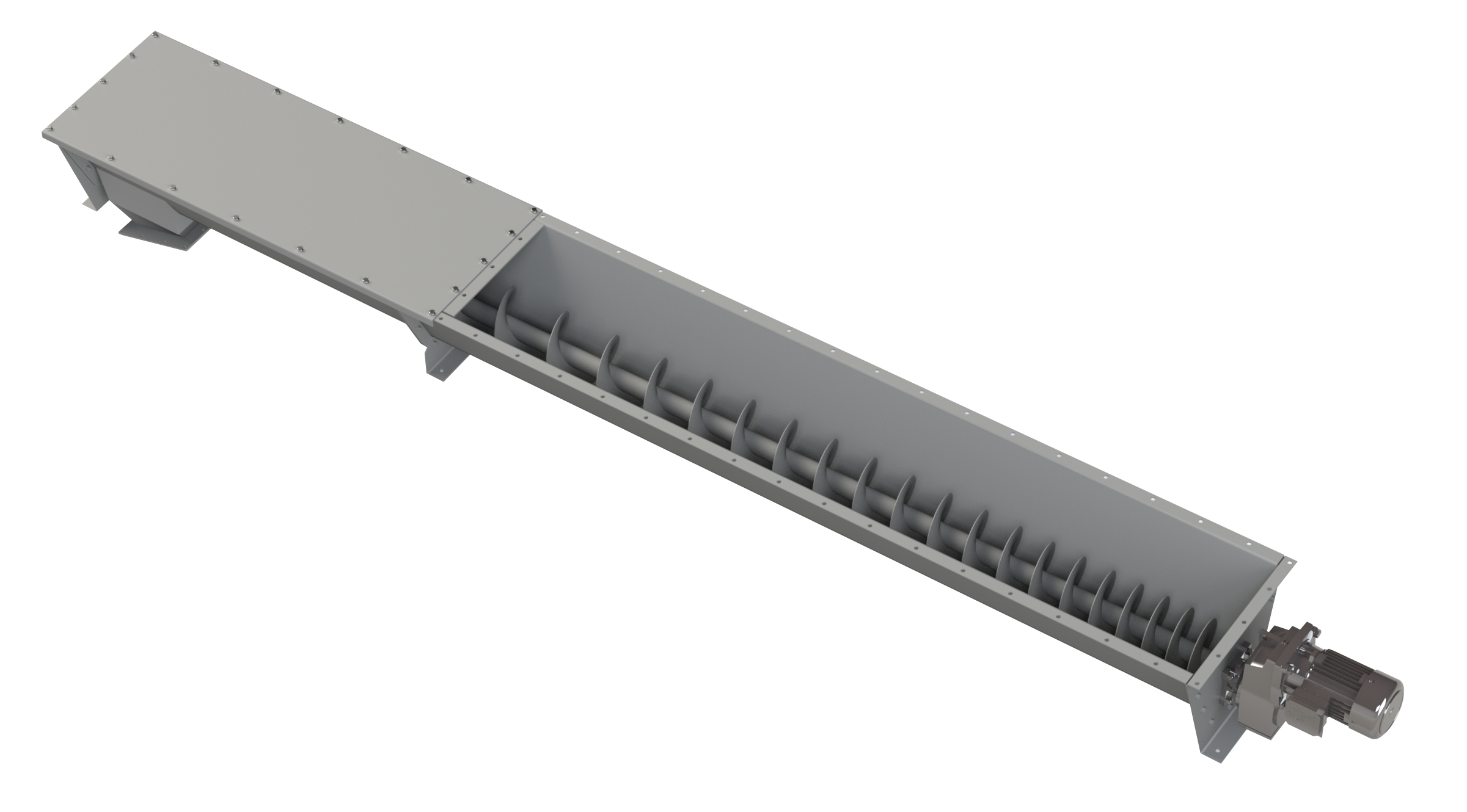 Efficient bulk material handling using helical screw elements in a closed trough.